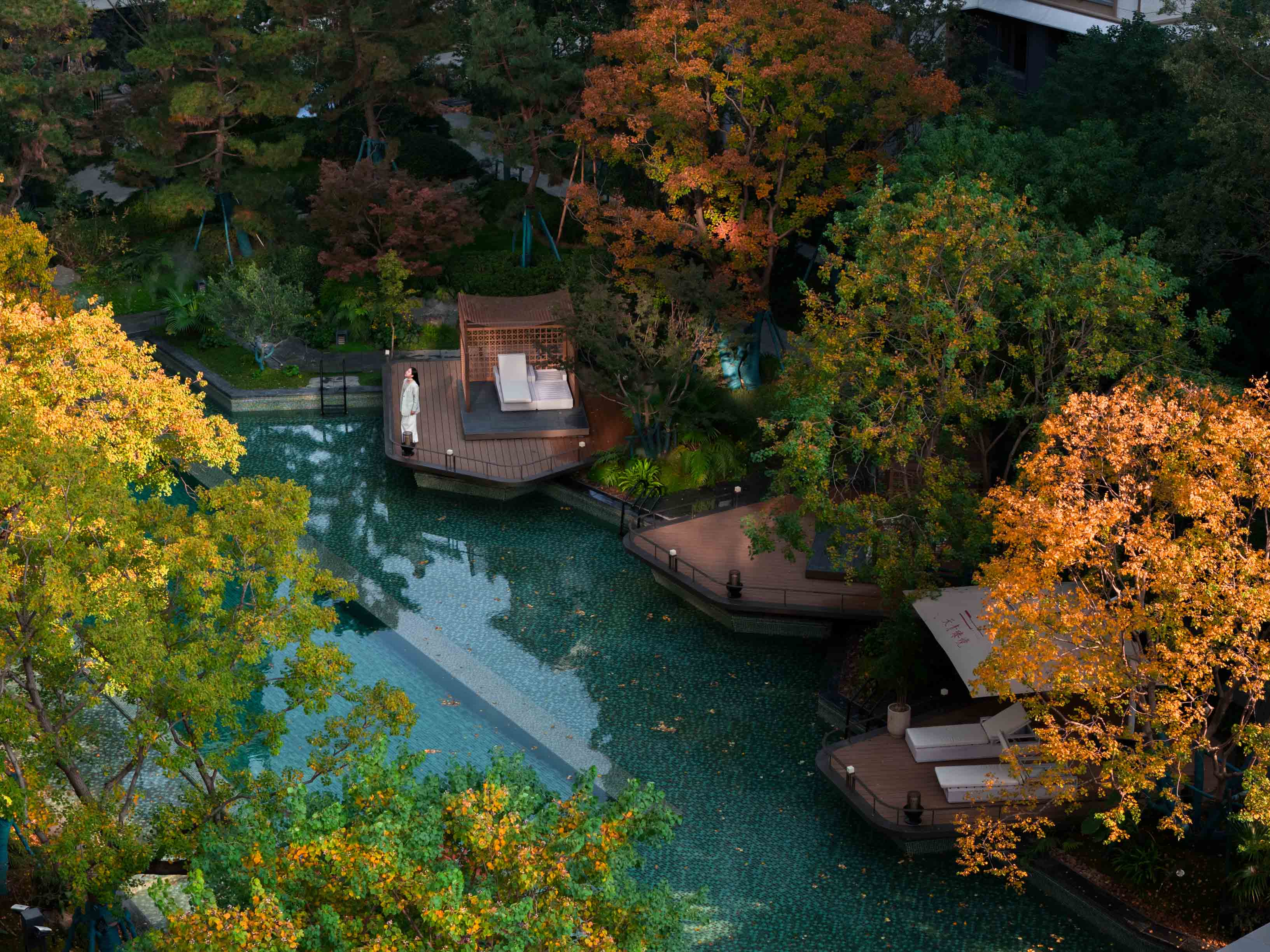 © 坐在水岸平台与下沉空间,产生观--游的视线互动