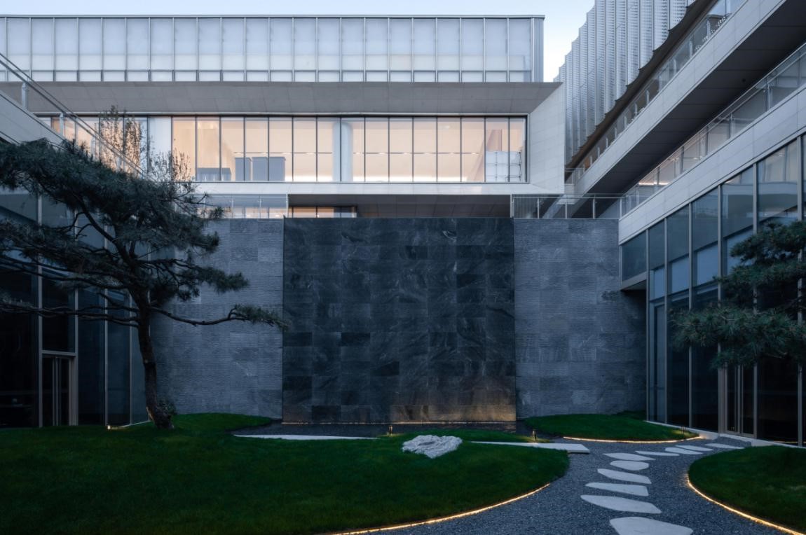 从谧径一路行入光庭,建筑有盛唐时宫苑现代显化的意味,16M悬挑空间,40M长体验动线,以光与影为轴线贯穿始终,建筑景观界面已不分彼此,这一刻的体验更注重精神,引人思绪生发。